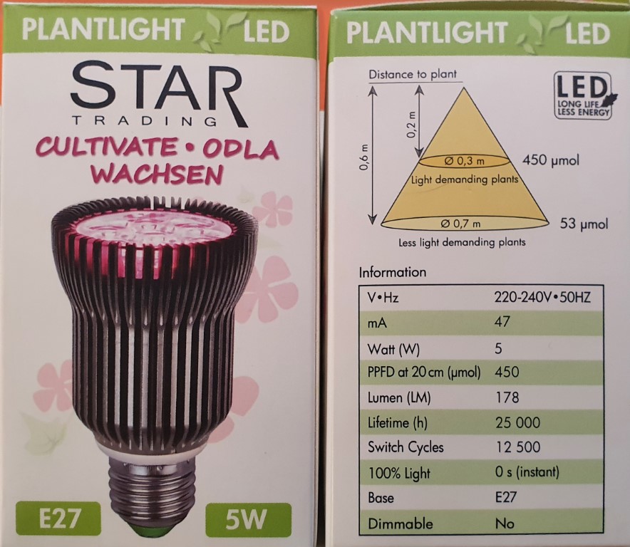Sain eräästä sähköliikkeestä pari LED-kasvivaloa ja pitää testailla miten nämä toimivat kasvien kanssa.